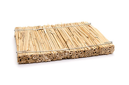 - Schilfrohr-Leichtbauplatten werden gepresst und alle 14–18 cm durch beidseitig angelegten, verzinkten Draht gebunden